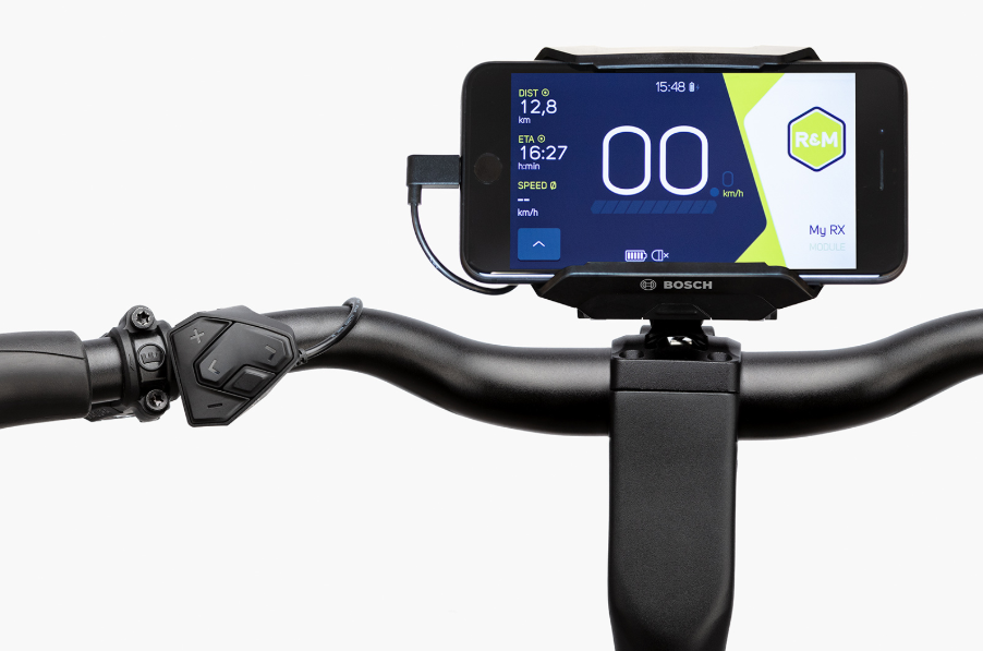 SmartphoneHub display upgrade ($118, not available on Rohloff models). The Bosch SmartphoneHub and app turns your smartphone into a display, combining the functions of smart navigation with live weather, fitness data and more. Other services and apps on your smartphone, such as music playback, can be controlled at the same time. It also works without a mobile phone: in this case, a display integrated into the cockpit shows key riding data.